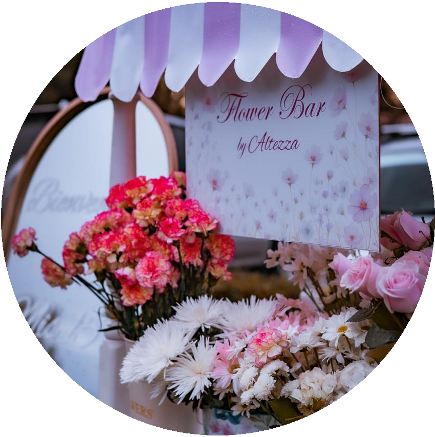 Una experiencia sensorial donde los invitados arman su bouquet con flores frescas y lo llevan como recuerdo.